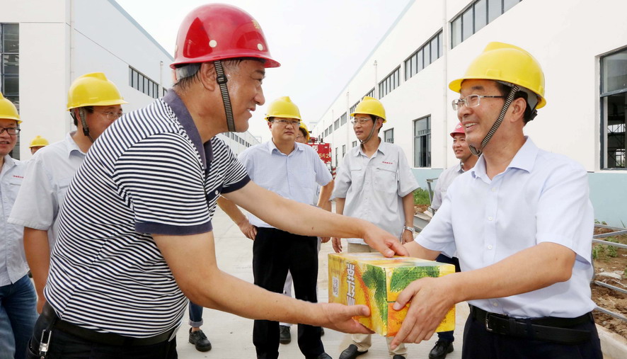 連日來,驕陽似火,酷暑難當。7月28日,集團公司楊龍、胡建明、楊國新、戴鴻鳴、匡友本、陳如軍等領(lǐng)導(dǎo)分赴基層一線,進車間、入工地、到灘(田)頭,慰問在高溫下堅守崗位的一線員工,送去冰紅茶、綠豆等防暑降溫品,在炎炎夏日中將“清涼”送到職工心坎上。