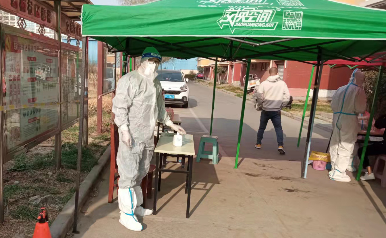 請打開“健康碼”,“姓名?居住幾號樓?這是第幾次參加核酸檢測……”3月10日,我市開啟第五次大規模核酸檢測工作。早上7點整,老黨員劉建舟來到海州區新月園小區,開始核酸檢測點的信息登記工作。劉建舟今年58歲,是徐圩公司31年黨齡的老黨員,面對突發的疫情,他第一時間來到社區,主動請求加入核酸檢測采樣點的志愿者隊伍。每天他認真做好小區1500余人信息登記、檢測場所消殺等工作,從早上一直工作到晚上8點,一天下來,腰酸背痛的他從凳子上一下子都起不來,當筆者問到是什么讓他毅然堅持到一線參加志愿者服務,劉建舟堅定地說:“因為我是一名黨員,在非常時期,我必須走在前頭,起帶頭作用。”