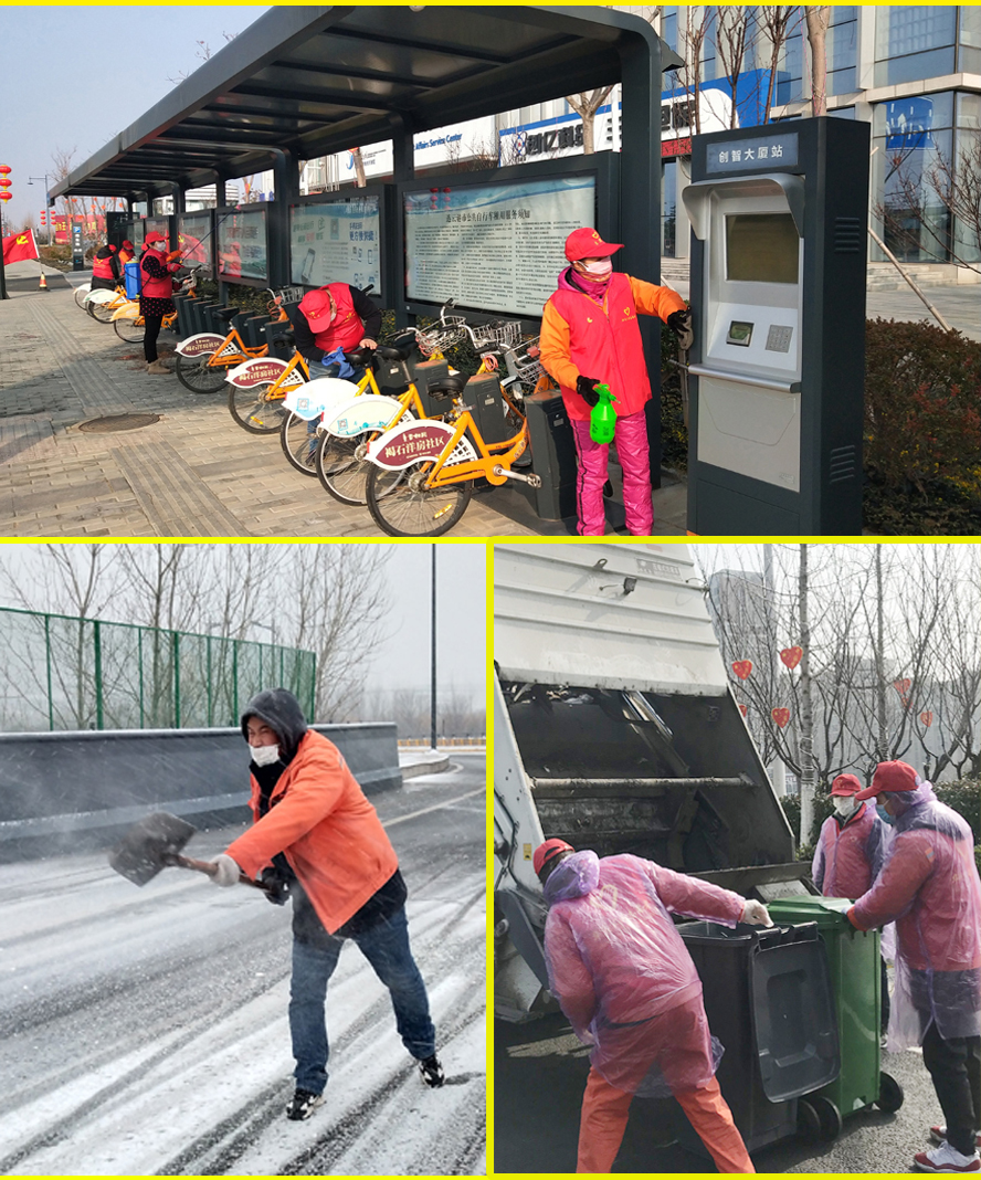 一個支部就是一座堡壘,在戰“疫”前沿筑起堅實的屏障。2月15日,新年的第一場降雪,給園區道路覆蓋上一層冰雪,給車輛出行帶來了不便和交通隱患,同時也給疫情防控工作增加很大的壓力。晚上7時許雪一停下,裕升、裕祥、裕欣三個養護公司黨支部迅速出動黨員突擊隊,協調鏟雪車、裝載機等除雪設備,帶上10多氯化鈣融雪劑,分散作業,對轄區內的馬山立交橋、馬山路淡水河橋、東方大道運鹽河橋、242省道淡水河橋及新光路涵洞等重要路段撒氯化鈣融雪,對積雪厚的地方運用除雪設備清理。連夜奮戰4個多小時,完成所有橋面、主干道路積雪,保證了通行安全。裕祥養護公司黨支部組織黨員志愿服務,對園區公交站臺、公共自行車站點、創智大廈銀行網點等區域進行滅菌消毒,將戰“疫”陣線延伸拉長。瑞泰服務公司黨支部針對疫情防控期間小區居民減少外出,生活垃圾量陡增的情況下,發揮黨員先鋒模范作用,合理調度車輛,加班加點,及時清運垃圾,確保小區衛生。每天清運垃圾700余桶,累計50余噸重,往返垃圾處理廠5個車次,整個行程200多公里。設立廢棄口罩專用垃圾桶,對所有垃圾堆放點及垃圾桶每天進行消毒。”