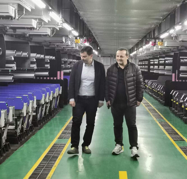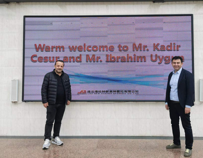 隨著疫情的結束以及紡織服裝市場的回暖,近日,土耳其NOGATEX公司總經理IBRAHIM和銷售總監KADIR到訪氨綸公司,對雙方的戰略合作方向進行了探討和交流。這是繼2016、2018年之后客戶的第三次來訪,董事長張斌對他們的到來表示熱烈歡迎。