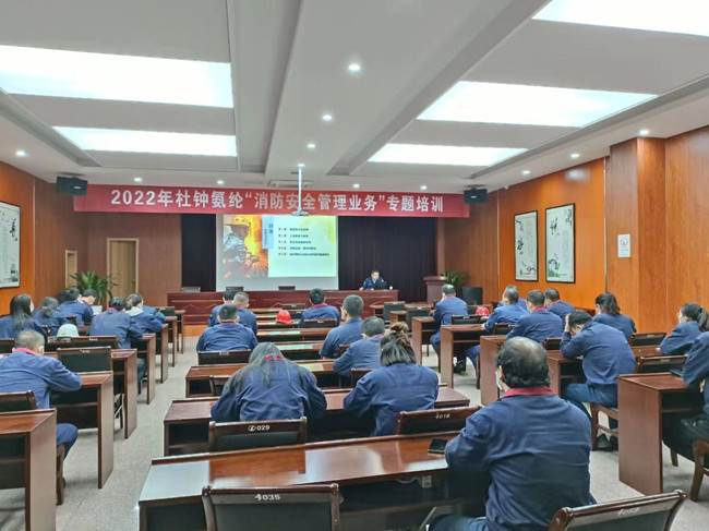 為深入推進氨綸公司安全生產百日攻堅行動,提高消防安全人員業務技能,提升消防安全管理水平,按照公司2022年教育培訓計劃安排,公司于11月11日舉辦2022年杜鐘氨綸“消防安全管理業務培訓”。本次培訓邀請開發區消防救援大隊張昊主講。