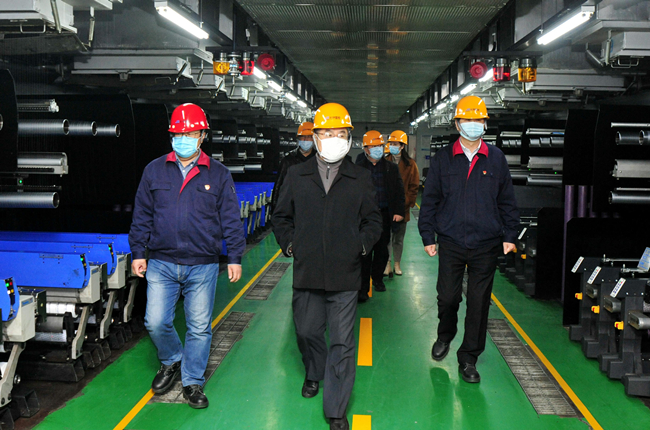丁維杰一行參觀了展廳、八期生產線、自動包裝線。張斌總經理詳細地介紹了杜鐘氨綸的發展歷程,公司近年來研發的功能性氨綸的主要特點以及后道產品的開發與銷售。在隨后的座談會上,又重點匯報了公司近年來“三鷹”計劃人才培養方面取得的良好成效。胡書記具體匯報了公司深化落實產改工作的一些舉措。劉主席介紹了集團層面上產改工作情況,他指出氨綸公司作為首批產改試點企業,結合企業實際,不斷總結探索,創造很多可借鑒可復制可推廣的經驗制度,發揮產業工人隊伍建設改革的示范引領作用。