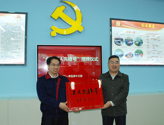 5月13日下午,氨綸公司差別化氨綸研發項目組榮獲“全國工人先鋒號”授牌儀式在公司黨員活動廳隆重舉行。市總工會副主席陳建、市總工會勞動和經濟工作部部長許小兵為我司獲得“全國工人先鋒號”的研發項目組團隊授牌。氨綸公司黨委書記胡傳法、總經理張斌等出席了授牌儀式。