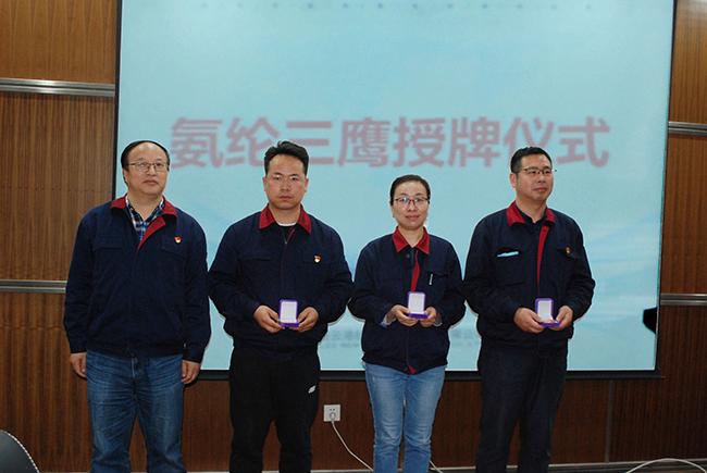 2021年5月12日下午,氨綸公司在1號(hào)會(huì)議室舉行“三鷹”授牌儀式。三鷹人才、各支部委員、勞模、五一勞動(dòng)獎(jiǎng)?wù)芦@得者等30余人參加了會(huì)議。公司黨委書記胡傳法、總經(jīng)理張斌、紀(jì)委書記劉殿龍出席了儀式。