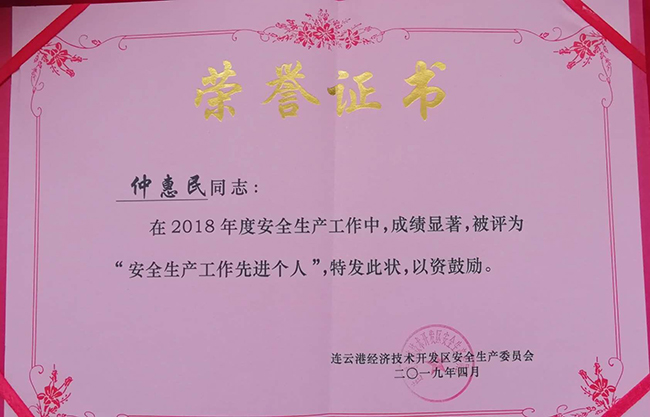 2019年4月12日下午,開發區召開全區安全生產大會。會上,區安監局局長許春明總結了2018年開發區安全工作取得的成績,對2019年開發區安全生產工作做了部署和要求,宣布了授予中云街道辦事處等29個單位為“全區安全生產先進單位”,邵治翔等64位同志為“全區安全生產先進個人”。氨綸公司仲惠民同志榮獲“全區安全生產先進個人”。