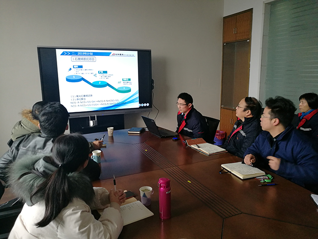 會上,雙方技術人員首先分別匯報了2018年度石墨烯改性氨綸研發項目的工作進展,對于項目技術內容進行深入探討,總結項目研究過程中存在的不足。此外,雙方在“科技副總”等方面合作也進行交流。化學工程學院院長童志偉指出,雙方要明確目標,將長期和短期目標相結合,加強研究過程產品的表征和質量控制。公司總經理張斌高度肯定了雙方合作,希望雙方的合作目標化、制度化、長期化,在技術創新方面、研究生工作站等研發機構方面繼續開展合作,并對2019年石墨烯改性氨綸項目提出了新的要求。