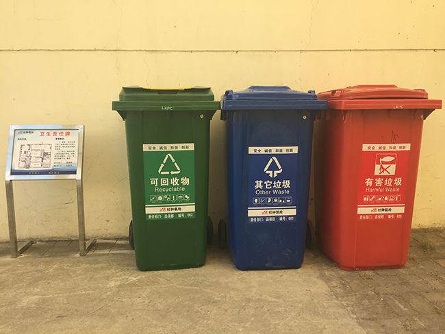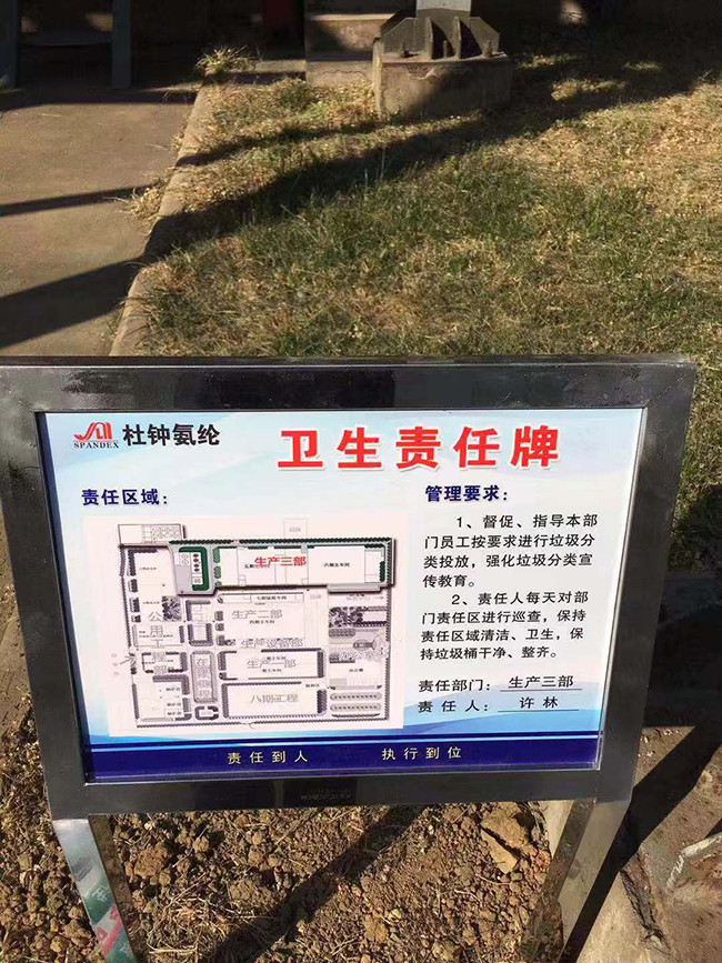 垃圾分類是對垃圾收集處置傳統方式的改革,是對垃圾進行有效處置的一種科學管理方法。近日,氨綸公司全面響應市委市政府創建國家級文明城市的號召,實施垃圾分類管理,在廠區內設置了三類垃圾箱-----綠色(可回收垃圾箱)、藍色(其它垃圾箱)、紅色(有害垃圾箱),垃圾箱上詳細標明各垃圾類具體分類,責任區域及責任人,做到分類管理、責任到人。