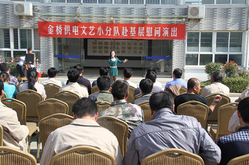 近日,為慶祝建國65周年,進一步踐行黨的群眾路線,豐富基層職工文化生活,公司工會組織文藝小分隊深入供電所等基層單位巡回慰問演出,為一線職工送去精彩紛呈的“文化大餐”,贏得了基層職工群眾一致好評。 在臨時搭建的舞臺上,文藝小分隊自編自演的的歌舞、相聲、詩朗誦、器樂彈唱等豐富多彩的節目,貼近基層,貼近生活,謳歌金橋供電十年成就,展示金橋供電職工風采,贏得了現場觀眾陣陣掌聲。中間還穿插了擊鼓傳花觀眾互動節目,基層職工踴躍參與,氣氛活躍。最后,演出在會場全體人員齊唱《歌唱祖國》中圓滿落下帷幕。 公司自成立以來,一直注重企業文化建設,利用多種形式活躍基層文化生活,滿足員工多層次、多角度的精神需求。不僅加強基層單位“職工小家”建設,建立了“職工書屋”、職工活動室、乒乓球室、羽毛球活動場地等基礎設施,還舉辦了職工運動會、籃球賽和文藝演出等活動。不僅發揮傳統職工文化活動的優勢,而且還創新具有時代特色文化活動的形式,不斷增強員工的凝聚力和向心力。通過本次深入基層慰問演出,不僅為戰斗在一線的基層職工獻上一份精神“大餐”,同時也展示了金橋供電的良好作風和企業形象。(趙艷)