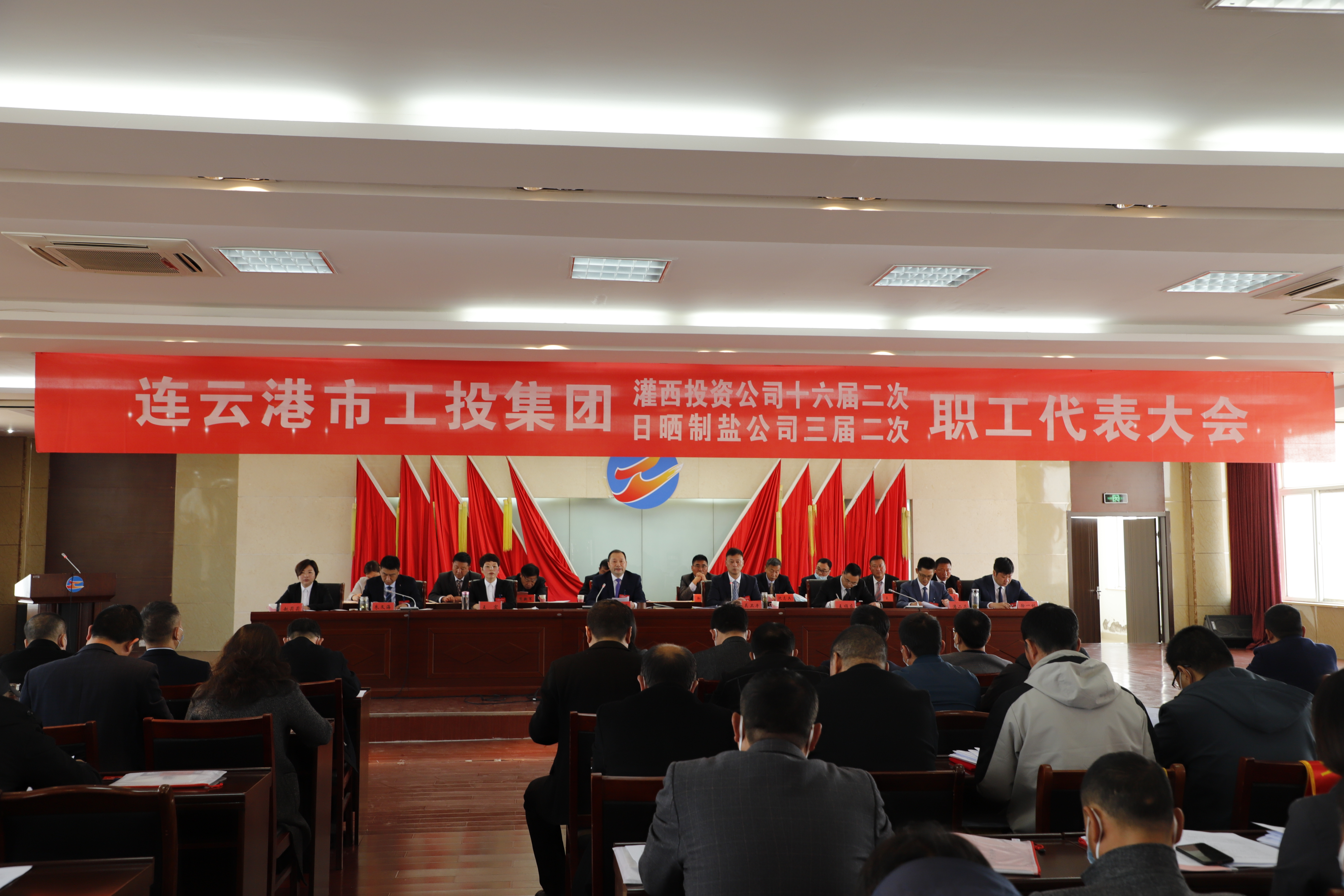 凝心聚力謀發展,合力攻堅抓落實。4月9日上午,在雄壯的國歌聲中,灌西投資公司十六屆二次職代會暨日曬制鹽公司三屆二次職代會在機關五樓會議室隆重召開,來自各條戰線的職工代表齊聚一堂,共商企業發展大計。黨委書記、董事長、總經理李國文作講話,常務副總經理吳衛平作工作報告。公司黨委班子成員及主席團成員在主席臺就座。