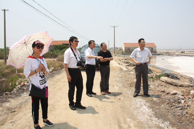 一行人先后到原民國(guó)時(shí)期公濟(jì)制鹽公司的辦公署遺址、早期產(chǎn)鹽平面灘和日曬制鹽公司的扒鹽現(xiàn)場(chǎng)參觀采風(fēng)。具有百年歷史的原公濟(jì)制鹽公司辦公署是灌西鹽場(chǎng)地區(qū)現(xiàn)存最古老的建筑物,也是整個(gè)淮鹽地區(qū)僅有的遺跡,隨著歷史的變遷,房屋雖幾經(jīng)改建,破損嚴(yán)重,但主體結(jié)構(gòu)仍然保留了下來,是重要的淮鹽文化物證。位于鈣液復(fù)曬區(qū)的早期產(chǎn)鹽平面灘,是前不久為央視攝制組拍攝淮鹽發(fā)展歷史而改造的制鹽平面灘,復(fù)制了過去的制鹽工藝及生產(chǎn)過程,在平面灘上,大家拿起收鹽刮板,挑起鹽筐,手推小鹽車,一一體驗(yàn)一下過去鹽工們的勞動(dòng)方式。在新河制鹽分公司十班的扒鹽現(xiàn)場(chǎng),機(jī)聲隆隆,潔白鹽廩不斷壯大,這是日曬制鹽公司上半年最后一臺(tái)正在扒鹽的機(jī)組,其余的七臺(tái)扒鹽機(jī)組已經(jīng)先后完成的扒鹽任務(wù),正在進(jìn)行最后三塊格的扒鹽工作。大家一邊參觀,一邊拍照,通過古今不同時(shí)期產(chǎn)鹽方式對(duì)比,對(duì)過去鹽工們的艱辛勞動(dòng)和現(xiàn)代制鹽技術(shù)的革新,生產(chǎn)力的提高都有了直接的感受,個(gè)個(gè)感觸頗深。(季興勝)