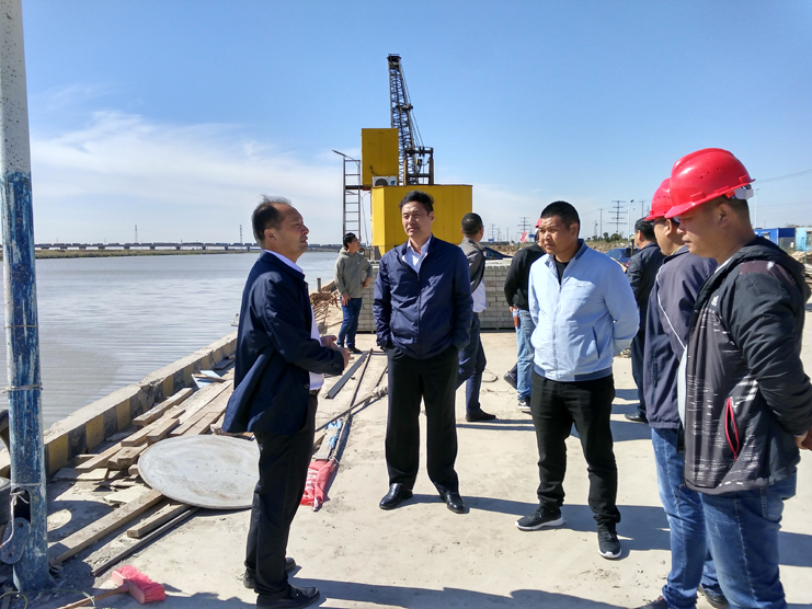 在宵洋五灌河碼頭施工現場,陳如軍一行實地查看了碼頭二期項目工程建設的進展情況,聽取了碼頭相關建設工作情況匯報,對工程施工中存在的幾點問題現場進行了溝通處理。宵洋五灌河碼頭二期項目工程自開工以來,灌西投資公司專門成立工程指揮部,堅持規范操作、注重工程質量、強化安全督查,認真做好施工期間的各項工作。目前,碼頭的主體部分已經完成混凝土澆注,堆場地基正在進行平整,圍墻、塔吊等配套設施設備也正在落實當中,預計10月底工程將基本完工。陳如軍要求,工程越是到最后,越要注重安全施工,要嚴抓質量管理;各項工作都要早安排早落實,及時做好工程施工資料的收集整理,確保工程順利通過驗收。