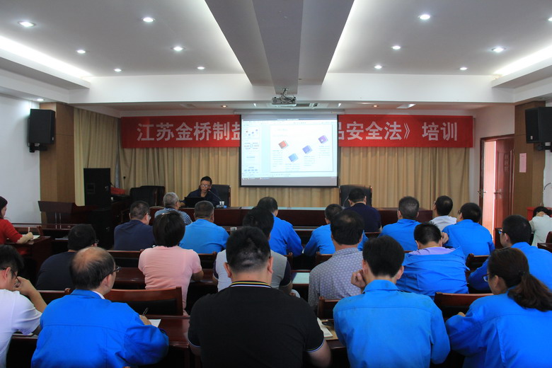 9月6日,我公司邀請(qǐng)北京世標(biāo)認(rèn)證中心審查員、揚(yáng)州市產(chǎn)品質(zhì)量監(jiān)督檢驗(yàn)所食化室主任陶俊,在三樓會(huì)議室開(kāi)展《食品安全法》培訓(xùn),公司領(lǐng)導(dǎo),各車(chē)間管理人員、班組長(zhǎng)、生產(chǎn)骨干和機(jī)關(guān)全體管理人員參加了培訓(xùn)。