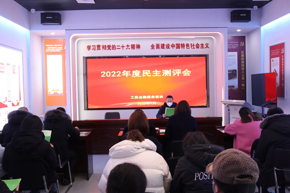 1月16日上午,金融板塊在五樓會議室召開2022年度民主測評會,支部書記、董事長徐兵主持會議。