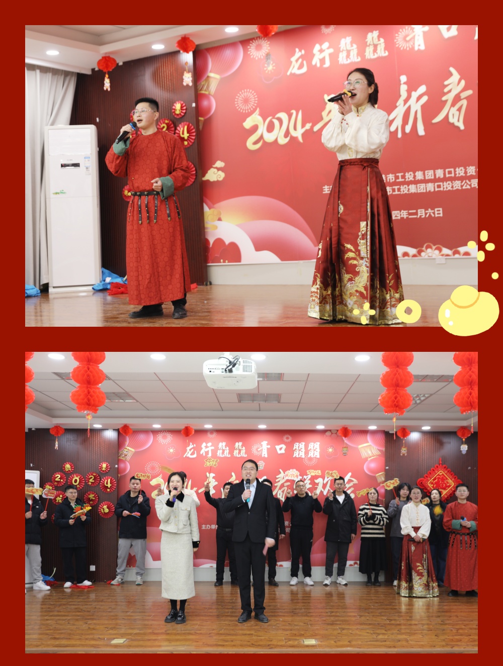 龍騰四海展宏圖,年輪輝煌展未來。2月6日下午,“龍行龘龘 青口朤朤”2024年迎新春聯歡會在泰祥三樓會議室舉行。公司領導班子及各單位、各部門干部職工80余人歡聚一堂,共賀新春,共話新篇。