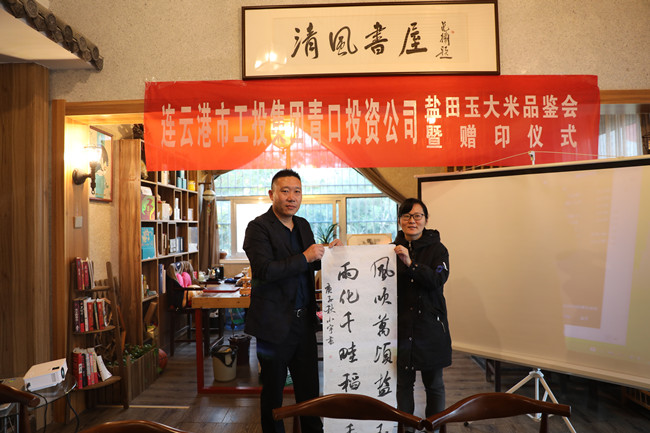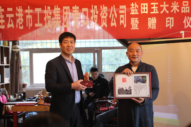 10月16日,青口投資公司米業營銷中心在海州區清風書屋開展“鹽田玉大米品鑒會暨贈印活動”。投資公司董事長胡傳法、中國書法家協會會員汪鐵穎以及部分連云港市海州區書法家協會會員參加活動。