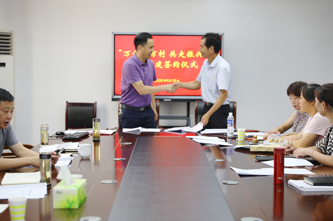 儀式上,分別與海頭鎮龍河村、龍南村、龍北村、大崗村和大官莊村5個村進行簽約。 (仲偉彬)