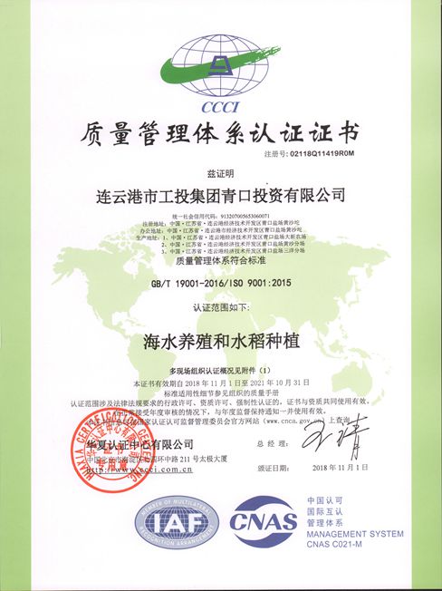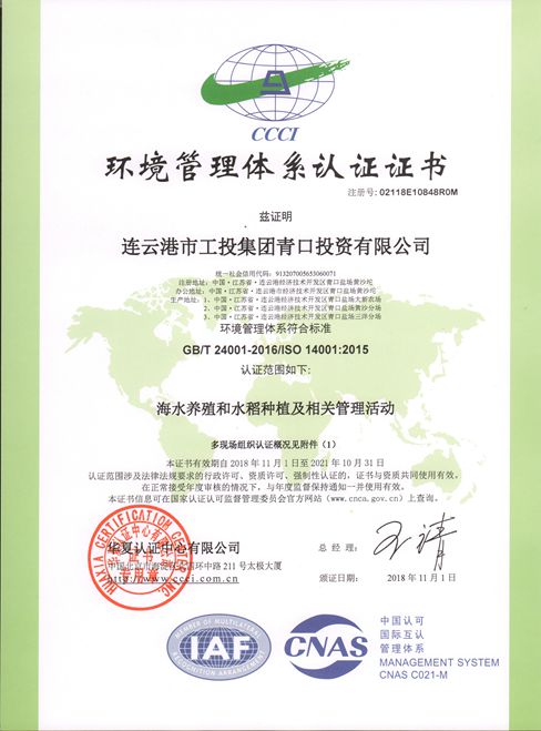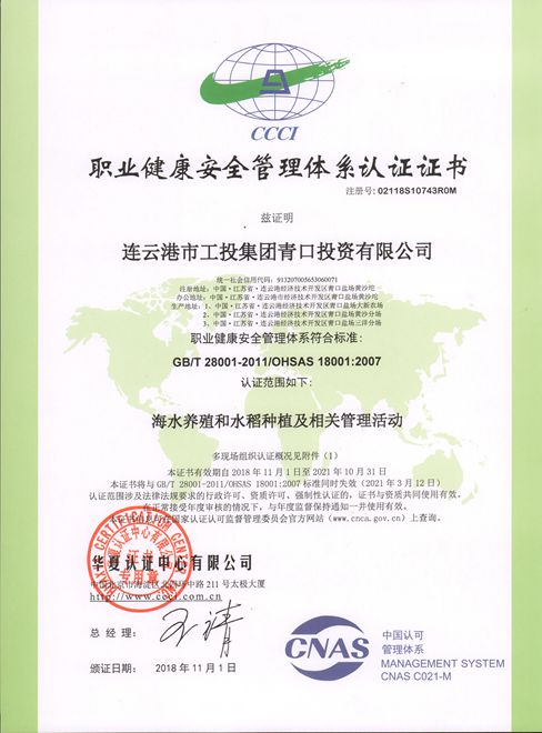 連云港市工投集團青口投資有限公司通過 ISO9001:2015、ISO14001:2015、OHSAS18001:2007管理體系認證。自2017年開始,公司開始著力于體系建設,并邀請北京華夏認證中心對我公司進行全面系統(tǒng)的審查,公司各部門和單位密切配合及時整改,通過近一年多地努力和完善,公司質量、環(huán)境、安全三體系的建設順利通過認證。三體系認證的圓滿通過,是企業(yè)轉型發(fā)展過程中的必要手段,對優(yōu)化企業(yè)內部管理具有十分重要的意義。(青宣)