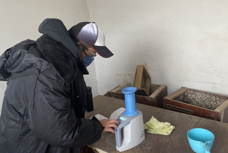 為確保糧食存儲安全和保障種植效益,大新農場曬場測量人員深入曬場對種植戶糧食進行跟蹤測水作業,為糧食安全儲存打造堅實屏障。(王璐)