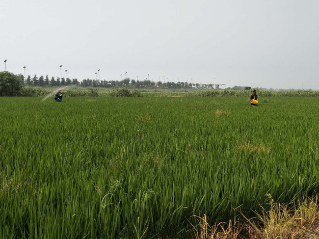 時值立秋、暴雨初晴,正是水稻孕穗旺季,大新農(nóng)場條田工抓住短暫晴天迅速施撒穗肥。由于近期光照少,陰雨較多,為穩(wěn)定糧食產(chǎn)量,爭創(chuàng)畝產(chǎn)新高,大新農(nóng)場結(jié)合農(nóng)技員意見,選用復合肥+尿素作為拔節(jié)孕穗期最后穗肥施撒。(楊杰)