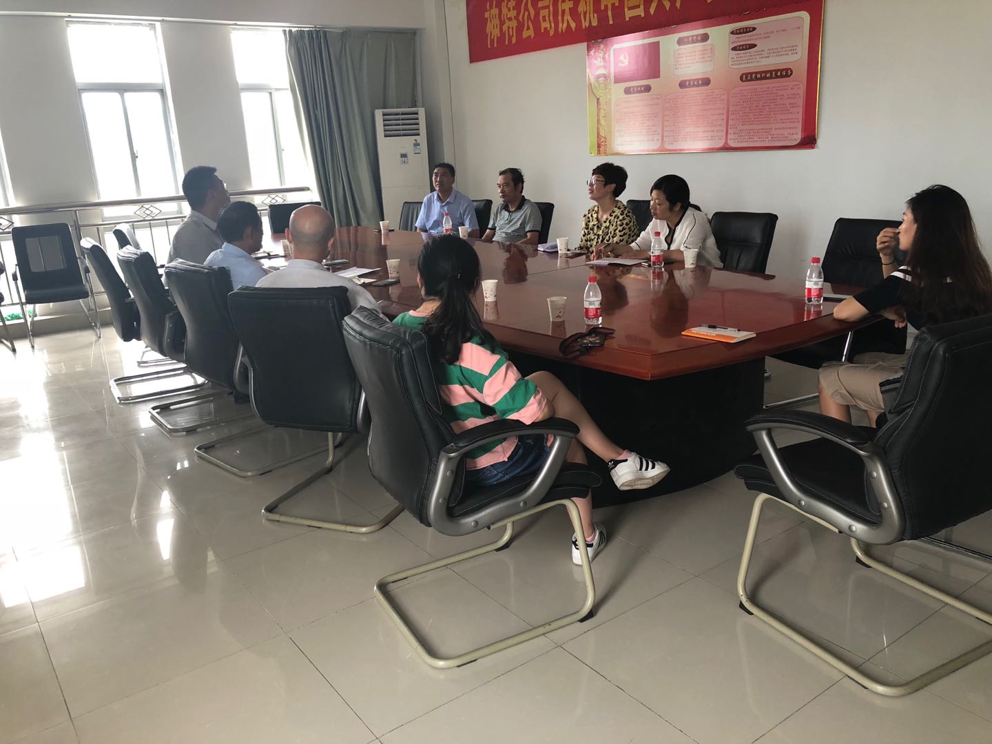 8月3日上午,應神特公司和奧神新材料公司邀請,灌西投資公司紀委書記、工會主席王宏率組宣、紀檢、工會部門負責人,走進兩個單位進行調研。先后觀摩了奧神新材料公司的黨建陣地和企業展廳,參觀了神特公司的生產車間和新建綜合辦公樓,就陣地建設給與了現場指導。