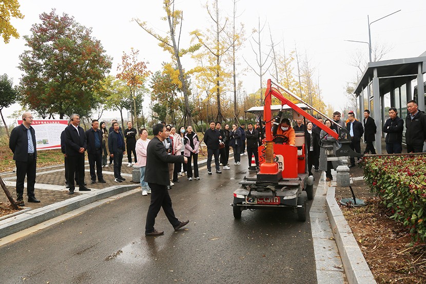 在匯晶路綠化作業現場,綠化分公司負責人分享了綠化分公司在“班組承包制管理”“綠化養護機械化與智能化”等方面的成功經驗,圍繞集團公司“組織精健化、管理精細化、經營精益化”三精化管理要求,進一步降低人工成本,提高工作效率,提升養護質量,跑出了科學的養護“加速度”,日常養護作業效率和安全系數得到“雙提升”。