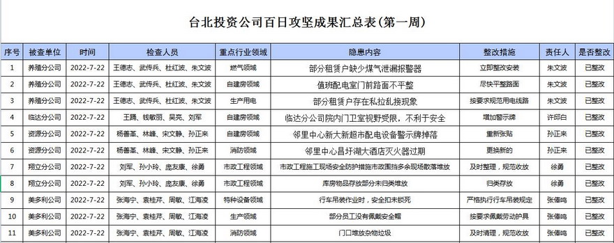 安全生產(chǎn)百日攻堅成果(第一周)
