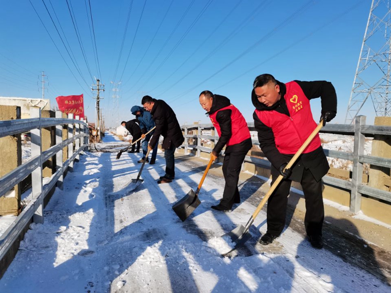 ? 冷冽的寒風(fēng)中,黨員先鋒隊、青年突擊隊、巾幗突擊隊沖鋒在前,有序地清理道路、生產(chǎn)現(xiàn)場、商戶門口等地方的積雪。大家有的揮舞鐵锨,鏟冰除雪;有的手拿掃帚,清掃路面。道路以及進(jìn)出口的積雪情況得到緩解,及時保證了道路安全暢通,傳遞了一份溫暖和正能量,也充分體現(xiàn)了黨員干部的先鋒模范作用。