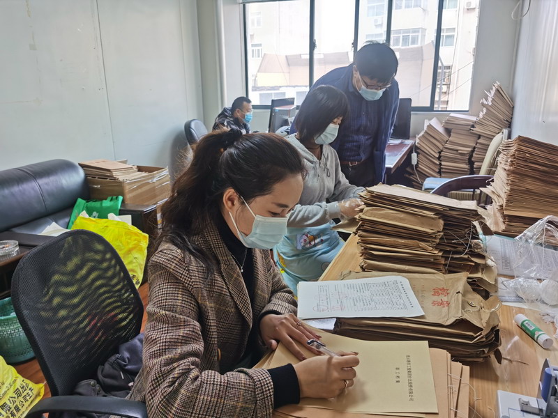 在檔案整理現(xiàn)場(chǎng),大家通力配合,有的整理檔案、有的輸入電腦、有的仔細(xì)核對(duì),加班加點(diǎn)做好退休人員基本信息和檔案整理、登記造冊(cè)等工作,有條不紊、熱火朝天。工作人員層層壓實(shí)責(zé)任,細(xì)化任務(wù)分工,編制移交清單,對(duì)各個(gè)時(shí)期的人事檔案材料及時(shí)進(jìn)行梳理、鑒別、整理、裝訂,確保內(nèi)容真實(shí)準(zhǔn)確、材料齊全完整。此次涉及移交檔案1580卷,已經(jīng)完成1300余卷,其余部分將于近期陸續(xù)完成。