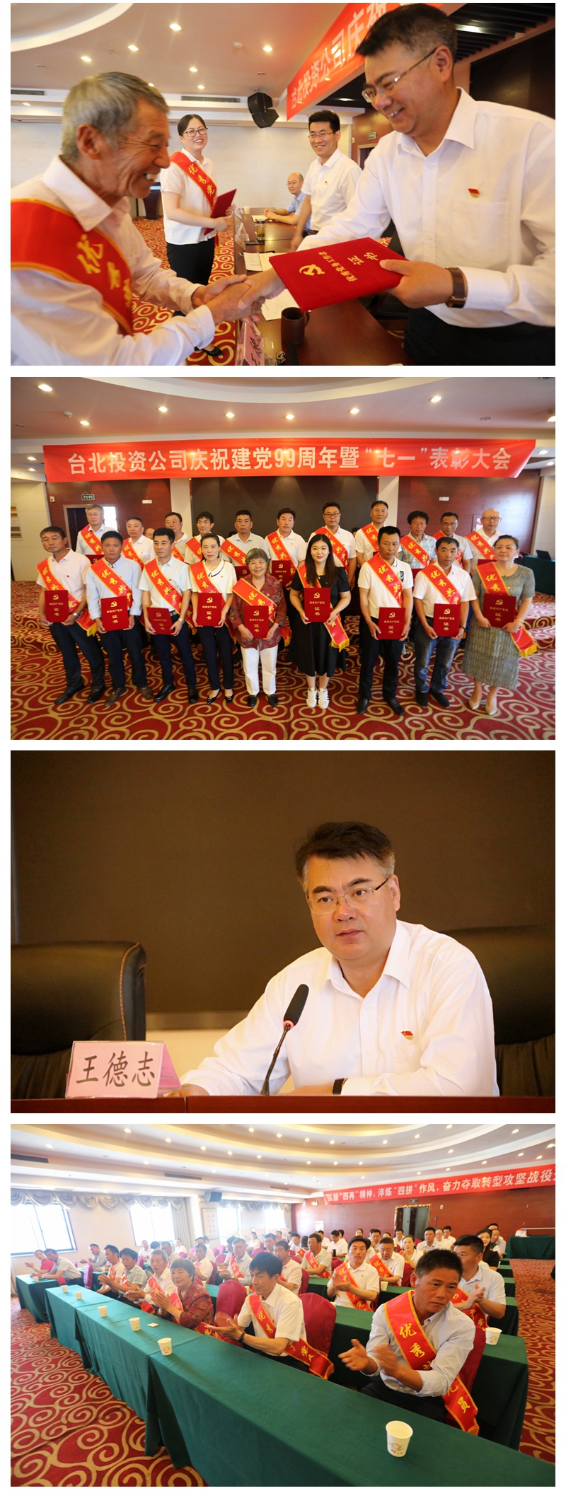 王德志代表公司黨委向為臺北發展無私奉獻的廣大共產黨員表示衷心的感謝,并致以節日的問候!他指出,去年以來,投資公司黨委堅持以習近平新時代中國特色社會主義思想為指導,貫徹落實新時代黨的建設總要求和新時代黨的組織路線,堅持和加強黨對國有企業的全面領導,進一步配強基層黨支部書記、副書記班子,委派紀檢專員,著力實踐黨建與經濟工作的互為融合,實現了“五個明顯提升”。一是黨員干部的思想素質明顯提升。二是黨組織的戰斗力明顯提升。三是融入發展中心明顯提升。四干部廉潔自律意識明顯提升。五是和諧企業構建水平明顯提升。