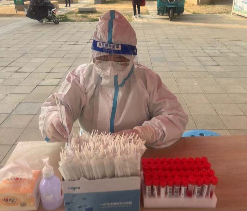 ? 8:30,我被分配了協(xié)助醫(yī)護(hù)人員進(jìn)行核酸采樣,在等待醫(yī)生來的空閑時(shí)間,“偷默默”自拍了一張;