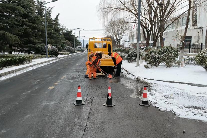 在排患工作中,盛達市政分公司安排2個“道路應急搶修小組”分頭行動,按照巡查組發現的情況,逐點對雪后道路坑窩等病害迅速展開搶修??紤]冬季氣溫低,不適合傳統熱瀝青修補方式,該公司為盡快解決安全通行問題,決定使用修補王、冷瀝青墊平等應急措施,先對道路坑窩、裂痕等進行臨時性維修,該公司在臨時修補完成后,還對維修點位建立了養護維修臺賬,以便事后巡查及養護,防止點位出現二次病害情況發生。