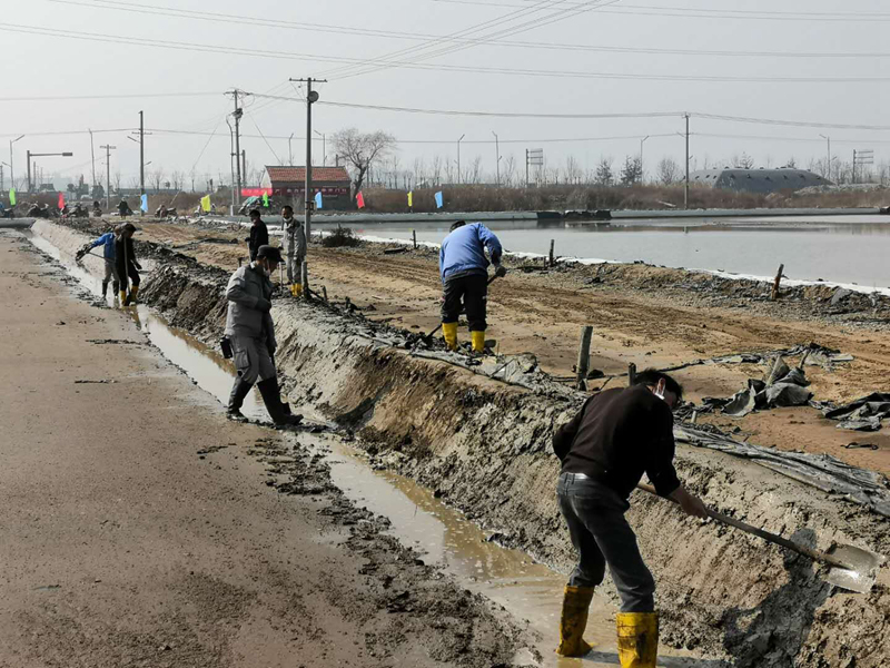 疫情攔不住奮進者們,大浦全體員工投入了一場又一次的緊張繁忙的原鹽生產中。他們克服疫情影響充分利用初春的間隙時間,對塑布拉放、修補、灘地整修、鹵水收儲進行及時有效的修復與儲存,為確保完成原鹽生產計劃奠定堅實的基礎。