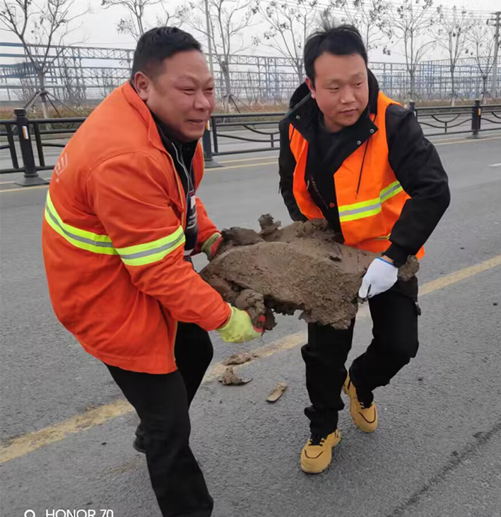 ? ? ? 道路保潔穩步推進。該分公司120余名保潔員工,無懼徐圩深冬時節冰冷天氣,園區道路兩側,核心區域地段,身穿橙色服裝保潔員工,不停清理道路兩側各類垃圾,裝車,打包轉運,清掏果皮箱。大保障活期間,每天轉運各類垃圾達300多包,清掃輔道落葉泥土2000多米長,勤勞耕作汗水有力推進大保障高質量進行,為營造良好活動環境無怨無悔忙碌于道路最前沿。