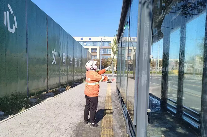 人工清掃不甘落后。針對秋季落葉增多,該分公司徐圩核心區域女子班組近20余名保潔人員,每天拉網式對上海路、南京路、徐圩大道主輔道進行人工清掃,確保新區核心路段環境美麗整潔。日清掃道路平均長達1000余米,打包裝運30余包,轉運各類樹木落葉近20余車。
