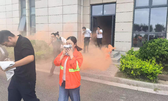 本次演練模擬公司辦公樓三樓電纜井因電路故障引發(fā)火情組織職工開展應急疏散。 “起火啦!”15時許,辦公樓三樓一電纜井內(nèi)突然涌出滾滾濃煙。臨近人員發(fā)現(xiàn)著火后,第一時間使用滅火器進行撲救。濃煙觸發(fā)自動報警裝置,消防控制室值班人員接到警報后,立即通知志愿消防隊伍趕赴現(xiàn)場撲救,并撥打報警電話,向應急指揮部報告。公司應急指揮部立即啟動應急預案,滅火搶救組、安全救護組、緊急疏散組等應急小組隨即到位,有條不紊開展滅火、疏散等工作。消防救援隊伍到達現(xiàn)場后,接過現(xiàn)場指揮權(quán),開展滅火救援。安全搶救組搜索受傷人員,并對受傷人員簡單急救后送往醫(yī)院進行治療,緊急疏散組立即組織辦公大樓人員,用濕毛巾捂住口鼻從應急通道撤離。10分鐘后,險情排除,應急救援結(jié)束。最后,組織部分人員開展滅火實操演練